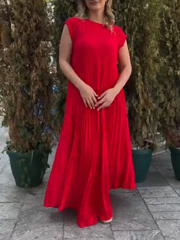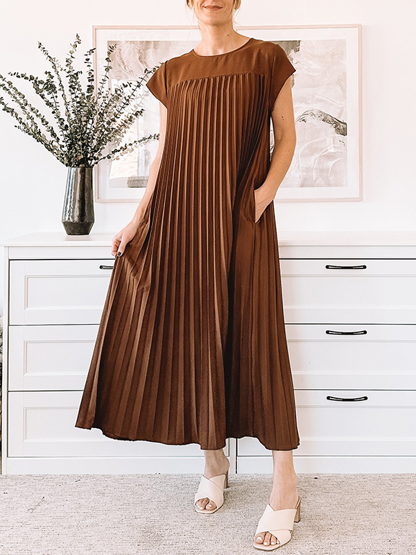 Timeless Elegance: Round Neck Casual Pleated Dress